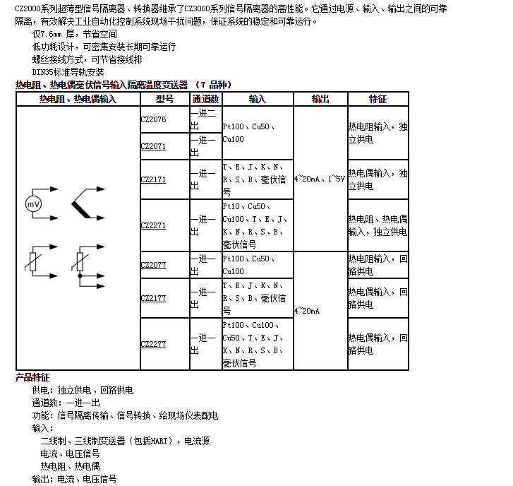 CZ2076,CZ2071,CZ2171,CZ2271,CZ2077,CZ2177,CZ2277,隔离温度变送器