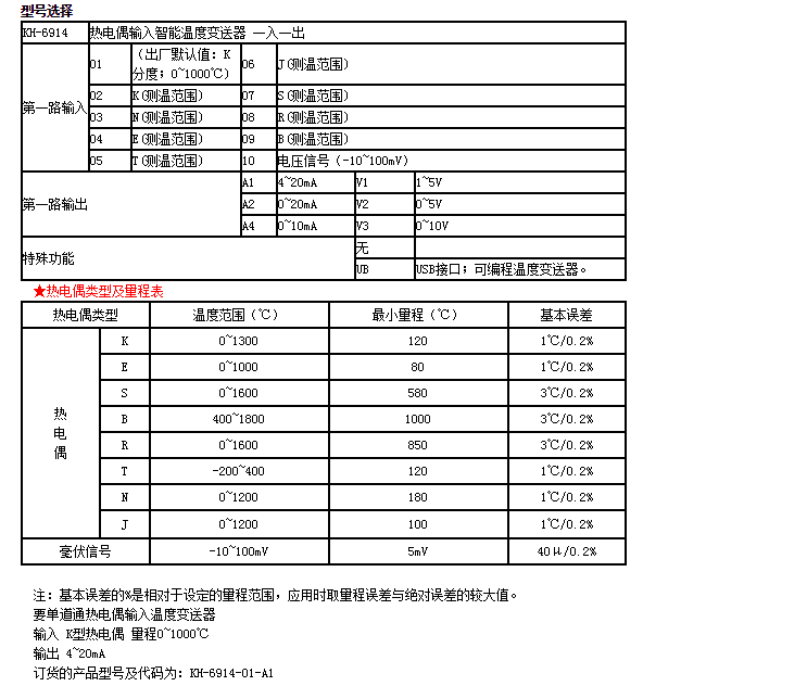 KH-6914-01-A1,热电偶输入智能温度变送器