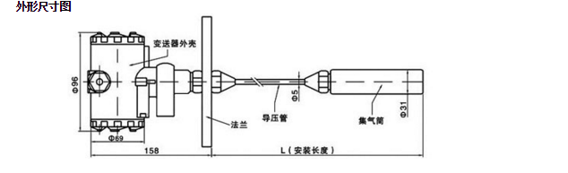 概述 高温导压液位变送器(气体导压式,用于高温、腐蚀性液体、污水等)的传感器部分与信号处理电路在接线盒内部,由投入液体内的集气筒内的气体与介质接触,通过导气管将压力传递给传感器,避免了传感器与被测介质的直接接触,适应于高温强腐蚀性等场合,有效地解决了高温腐蚀液体以及污水液位测量的难题。它特别适合于高温、腐蚀性液体和污水的测量。 该变送器广泛用于水厂、炼油厂、化工厂、玻璃厂、污水处理厂、高楼供水系统、水库、河道、海洋等对供水池、配水池、水处理池、水井、水罐、水箱、油井、油罐、油池及各种液体静态、动态液位进行测量。有高温高压、抗强腐蚀、一体化、法兰、数显液位变送器等多种型号可供选择。 压力变送器与液位关系为: P=0.0098ρH+Pc 式中:P 压强MPa; ρ 液体密度(g/cm3);H 液面深度(m);Pc 液面压力(常压为0) 特点 传感器不接触被测介质,可靠性高 独特的转换电路,性能稳定 过电压反极性保护 零位满度现场可调节 稳定性好,优于0.2%FS/年 使用温度高:-30~250℃ 主要技术参数: