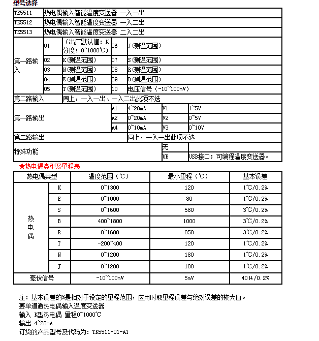 TK5511-01,TK5511-02,TK5511-03,TK5511-04,TK5511-05,TK5511-01-A1,热电偶输入智能温度变送器