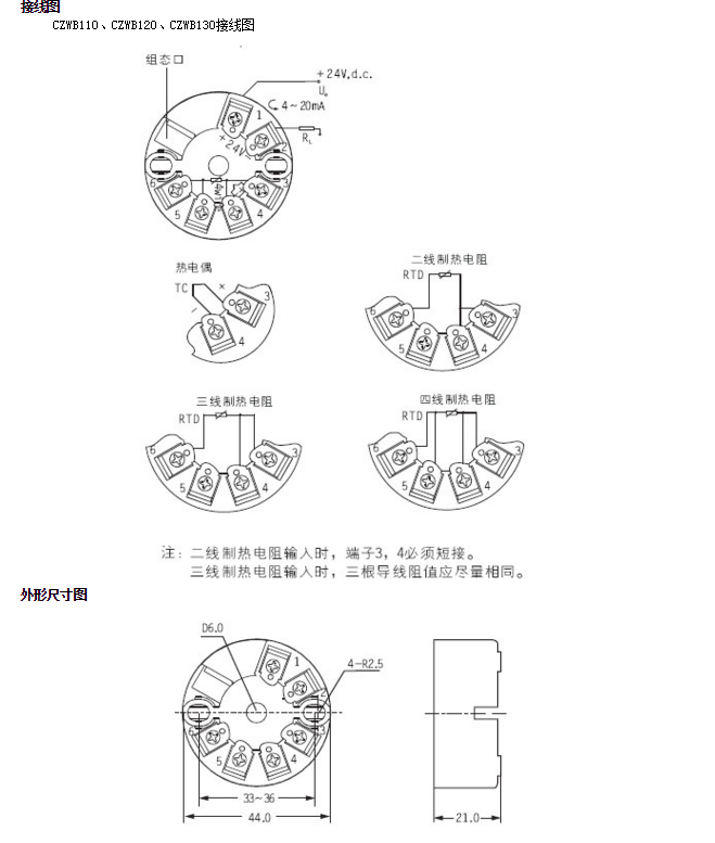 温度量程范围:根据连接的传感器类型 热电阻传感器连接形式: 2线制或3线制