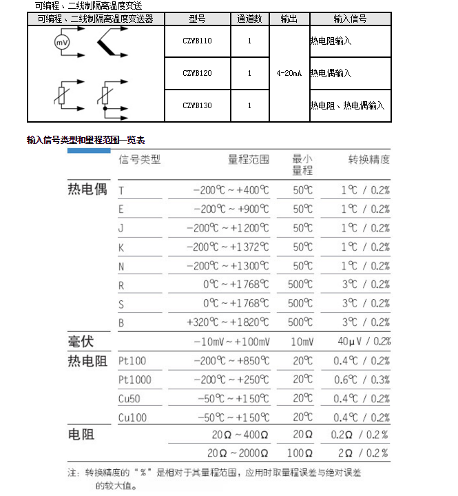 CZWB110,CZWB120,CZWB130,热电偶/热电阻通用输入温度变送器