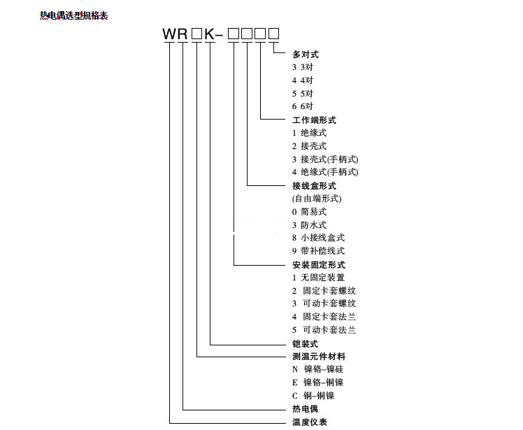 WR口K系列铠装热电偶是本公司精心设计制造的新一代系列产品,本系列产品符合国际电工委员会(IEC)标准,技术性能可替代同类进口产品。广泛用于航空、原子能、石油、化工冶金、电力、机械等现代化设备和离科技领域,也适合于进口成套设备的维修更换或输出项目的成套配套以及技术改造项目的配套。