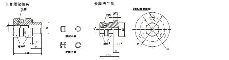 2、安装固定装置,其结构形式可分为:无固定装置,固定卡套螺纹、可动卡套螺纹,固定卡套法兰,可动卡套法兰和外保护管式等。