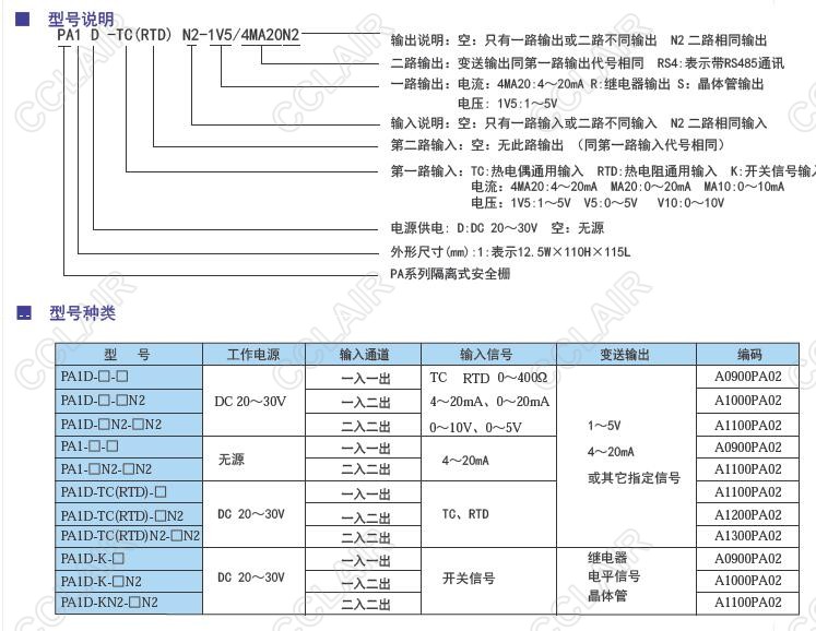 PA1D-TCN2,PA1D-RTCN2,PA1D-TC/RTCN2-1V5/4MA20N2,PA隔离式安全栅