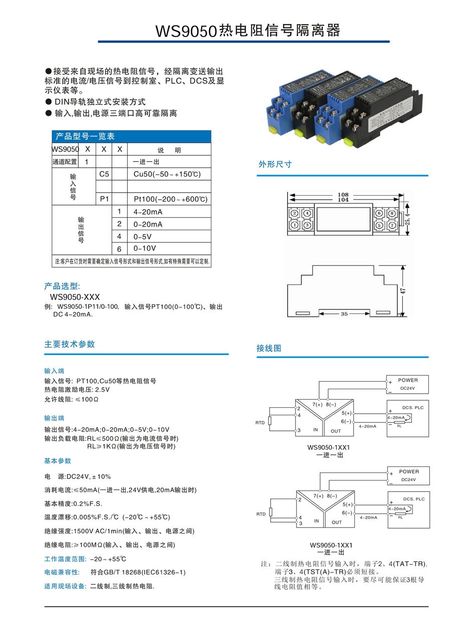 WS9050-1C51,WS9050,热电阻温度信号隔离变送器 .
