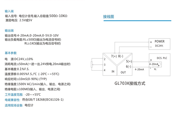 GL703K-1B1,GL703K ,电位计信号隔离调理器。