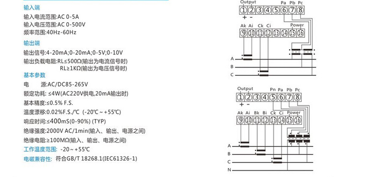 无功功率变送器输出范围:DC4-20mA、0-20mA、0-5V、0-10V、1-5V等用户需要的标准信号