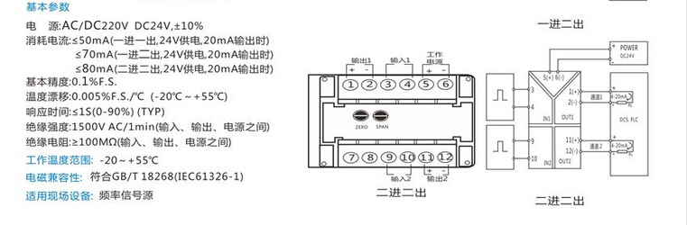 JD20F频率变送器输出范围:DC4-20mA、0-20mA、0-5V、0-10V、1-5V等用户需要的标准信号