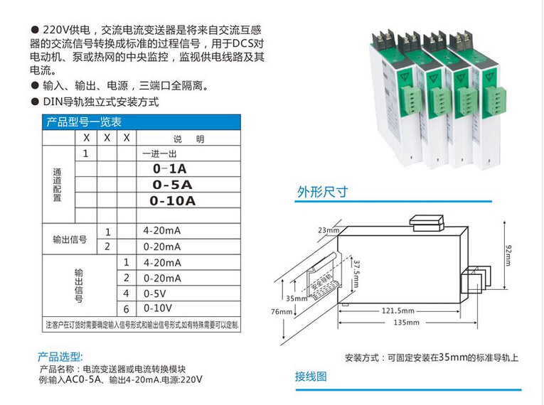 HD2841-7B0电流变送器输入范围:AC0-5A、标准信号