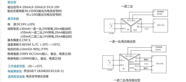 输出范围:4-20mA、0-10V、0-20mA、0-5V等用户需要的标准信号