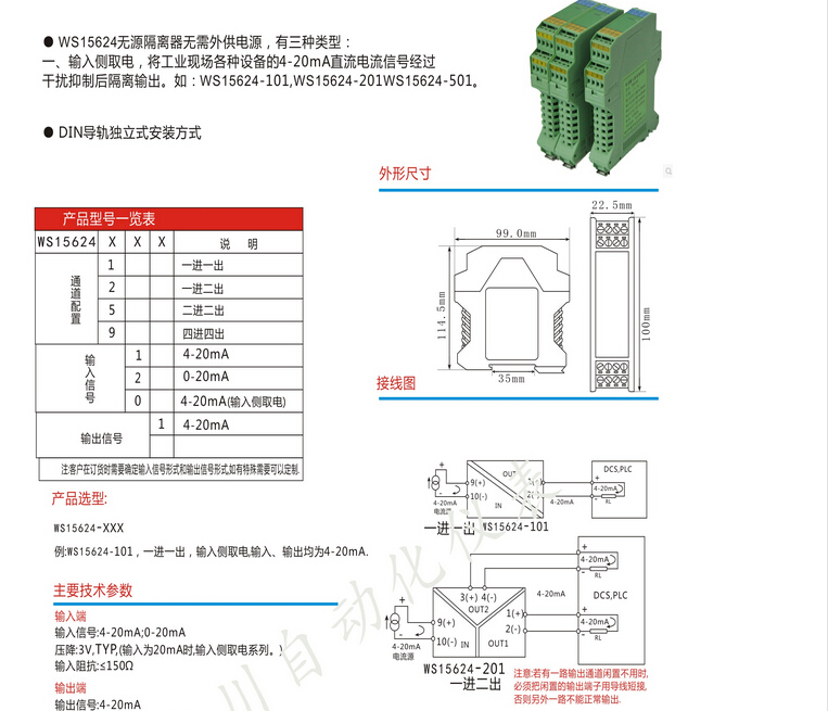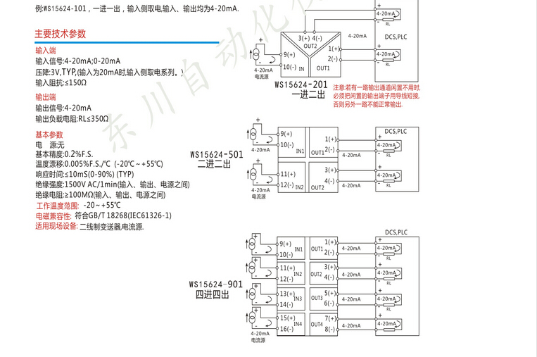 WS15624,WS15624-111,四输出全隔离信号隔离器,