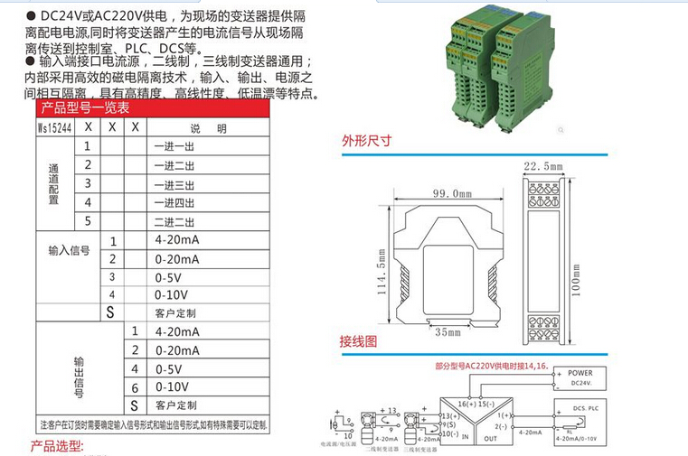 WS15244安全栅,全隔离信号分配器 隔离栅,信号隔离器模块,安全栅,电流转换模块。将输入信号变换为两路相互隔离的信号,低功耗,低热量,低漂移,DIN T型导轨安装