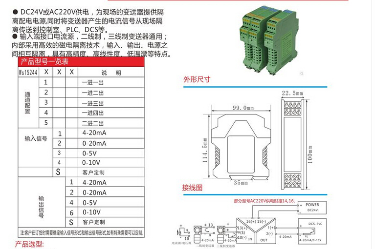 信号隔离器 隔离栅 输入输出方式:一进一出、一进二出、一入三出、一入四出、二入二出