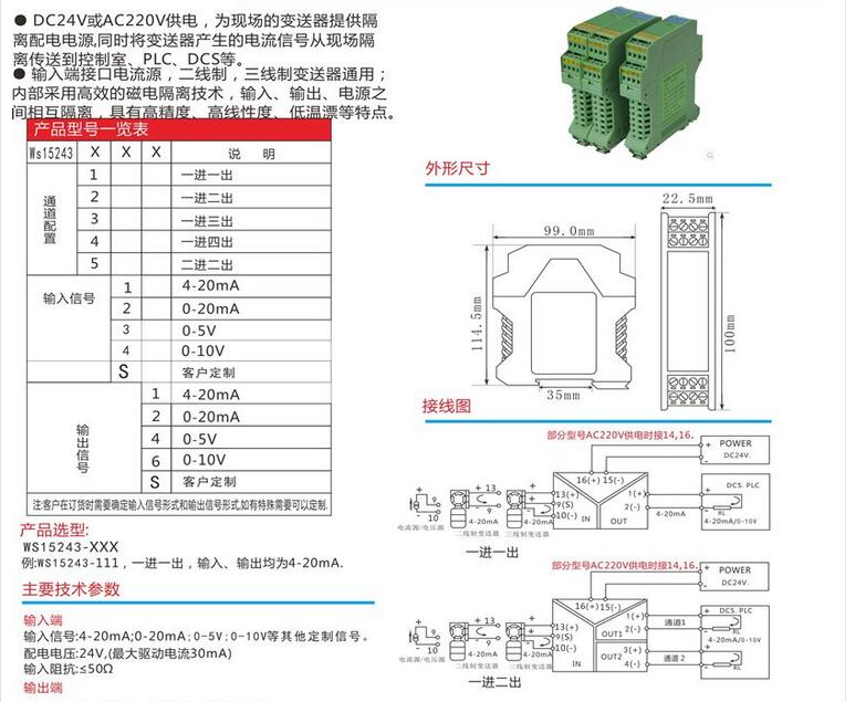 WS1524-111,WS15243,隔离栅信号隔离器。