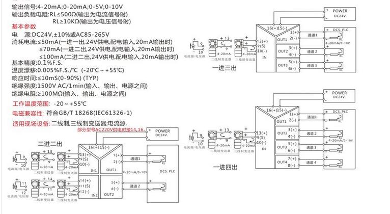 隔离栅输出范围:0-10V、4-20mA、0-20mA、0-5V等用户需要的标准信号