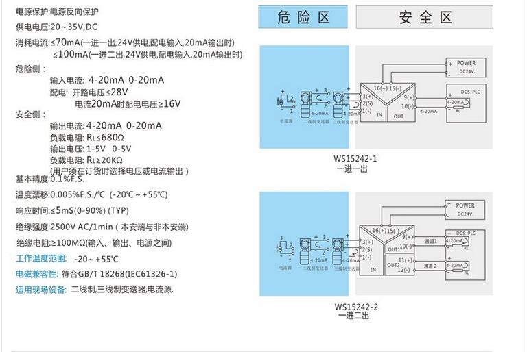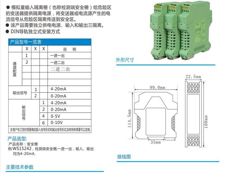 防爆安全栅 安全栅模块,全隔离信号分配器 隔离栅,信号隔离器模块,安全栅,电流转换模块。将输入信号变换为两路相互隔离的信号,低功耗,低热量,低漂移,DIN T型导轨安装