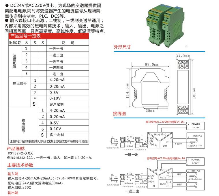 WS15242,WS1524-111,信号隔离器 直流信号转换模块.
