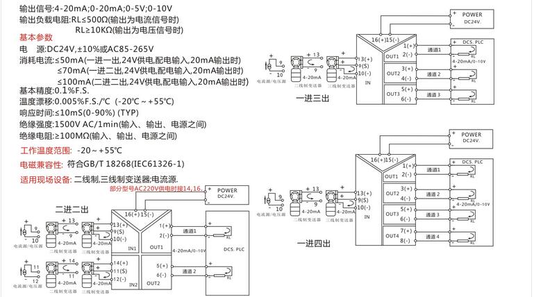 输出范围:0-10V、4-20mA、0-20mA、0-5V。1-5V,-0-10V等用户需要的标准信号