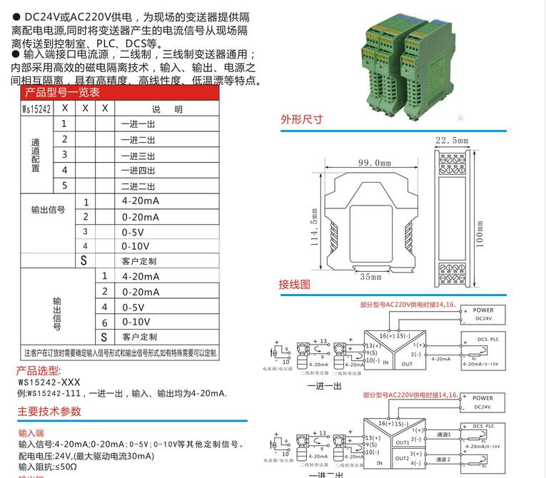 WS15242,WS1524-111,安全栅直流信号隔离器