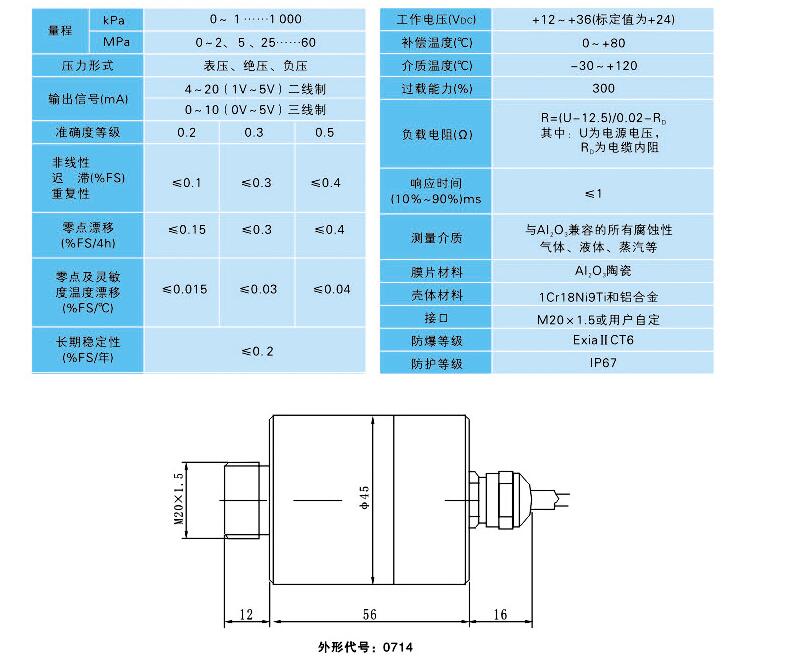 采用高性能的陶瓷压阻式力敏芯片,该系列产品具有抗腐蚀性强、耐磨损、抗过载冲击的特点;工作温度范围宽