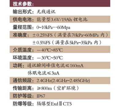 采油、输供暖等输送能源管道场合进行压力监测