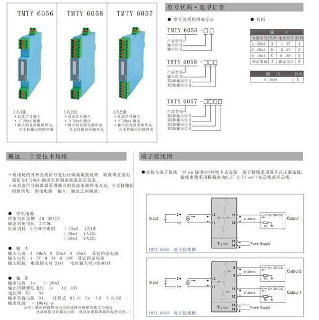TMTY6056,TMTY6057,TMTY6058 ,TMTY6056-1A,直流信号隔离器(支持输出回路供电)