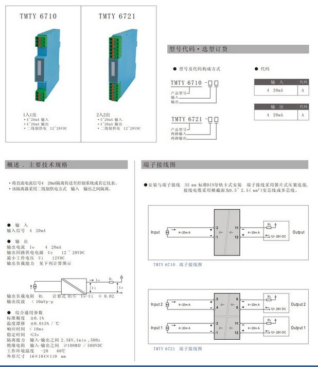TMTY6710,TMTY6721 直流电流输入,二线制隔离器