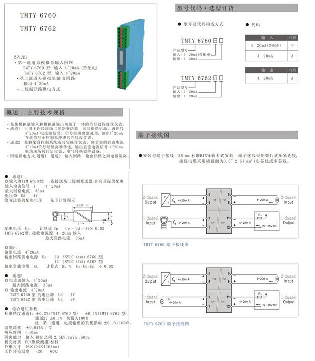 产品型号: TMTY6760/6762输入类型:4-20mA