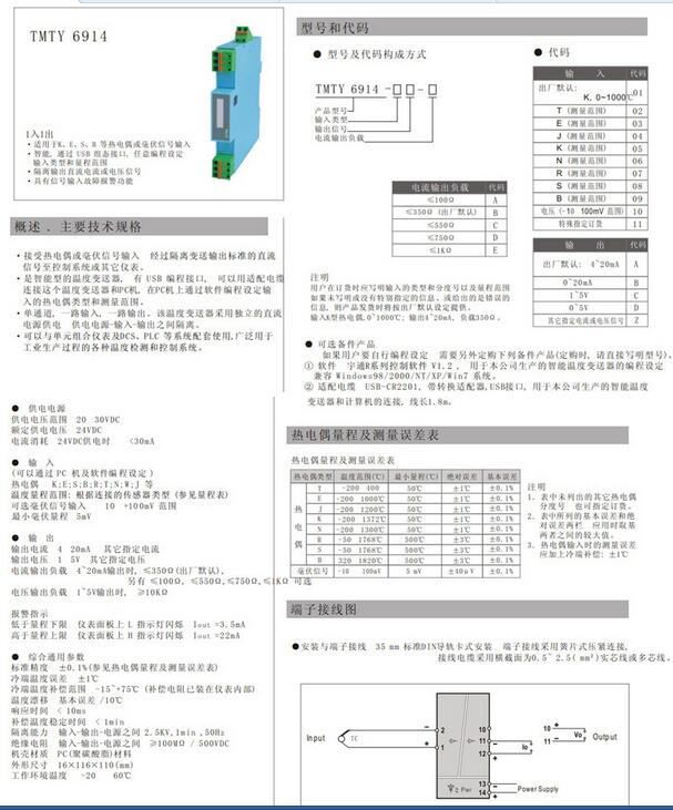 TMTY6914TMTY6915-11Z-D,TMTY6915-11Z-E,智能型热电偶输入隔离变送器(一入一出)