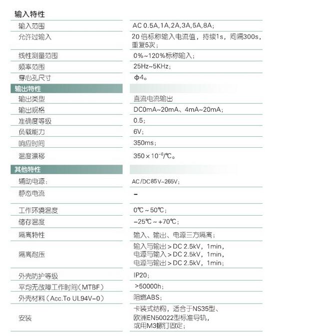 输入规格:AC 0-8A范围可选