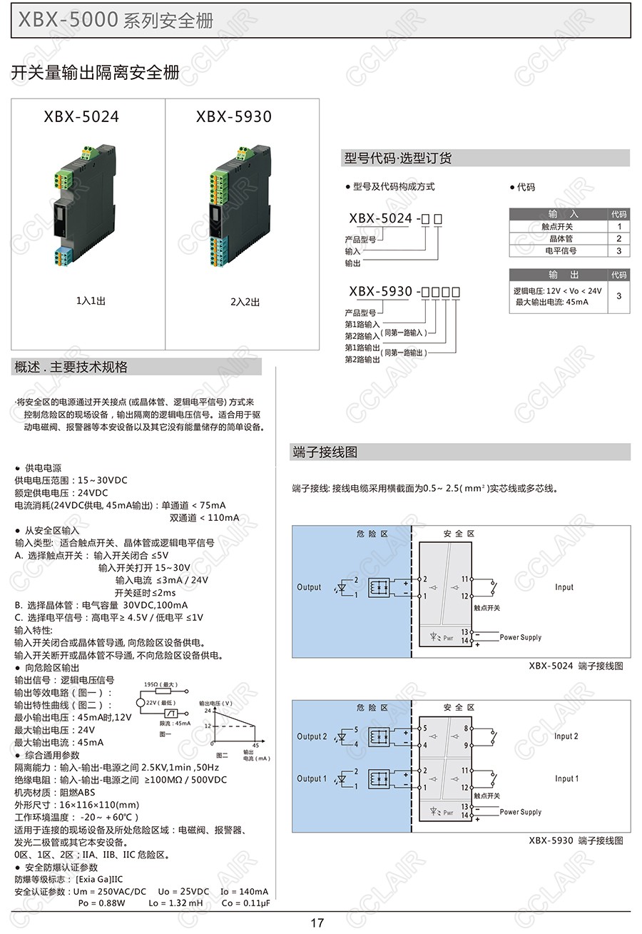 XBX-5024,XBX-5024-13,XBX-5024-23,XBX-5024-33,XBX-5930,开关量输出隔离安全栅(一入一出、二入二出)