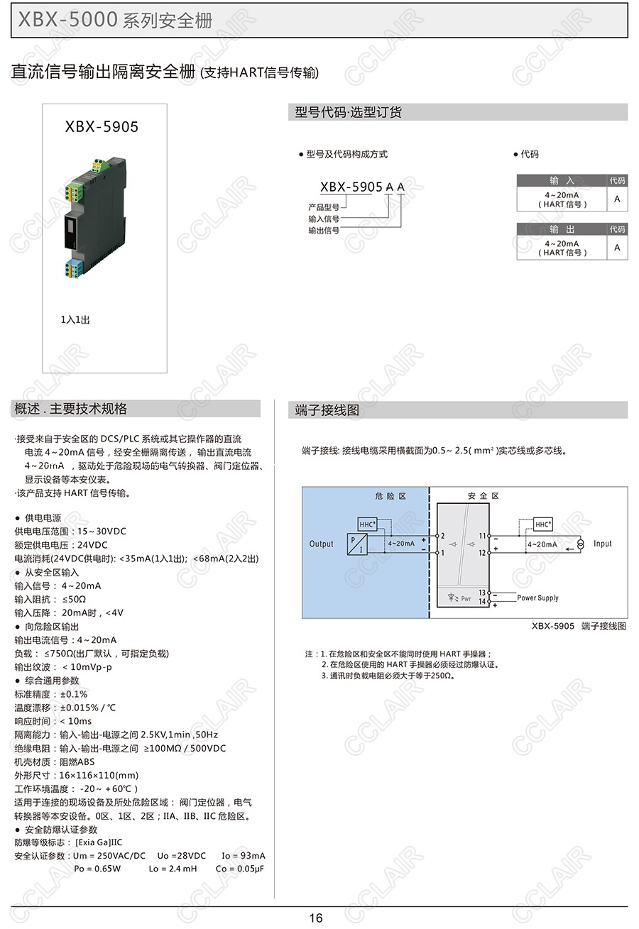 XBX-5905,XBX-5905AA,直流信号输出隔离安全栅(支持HART信号传输)