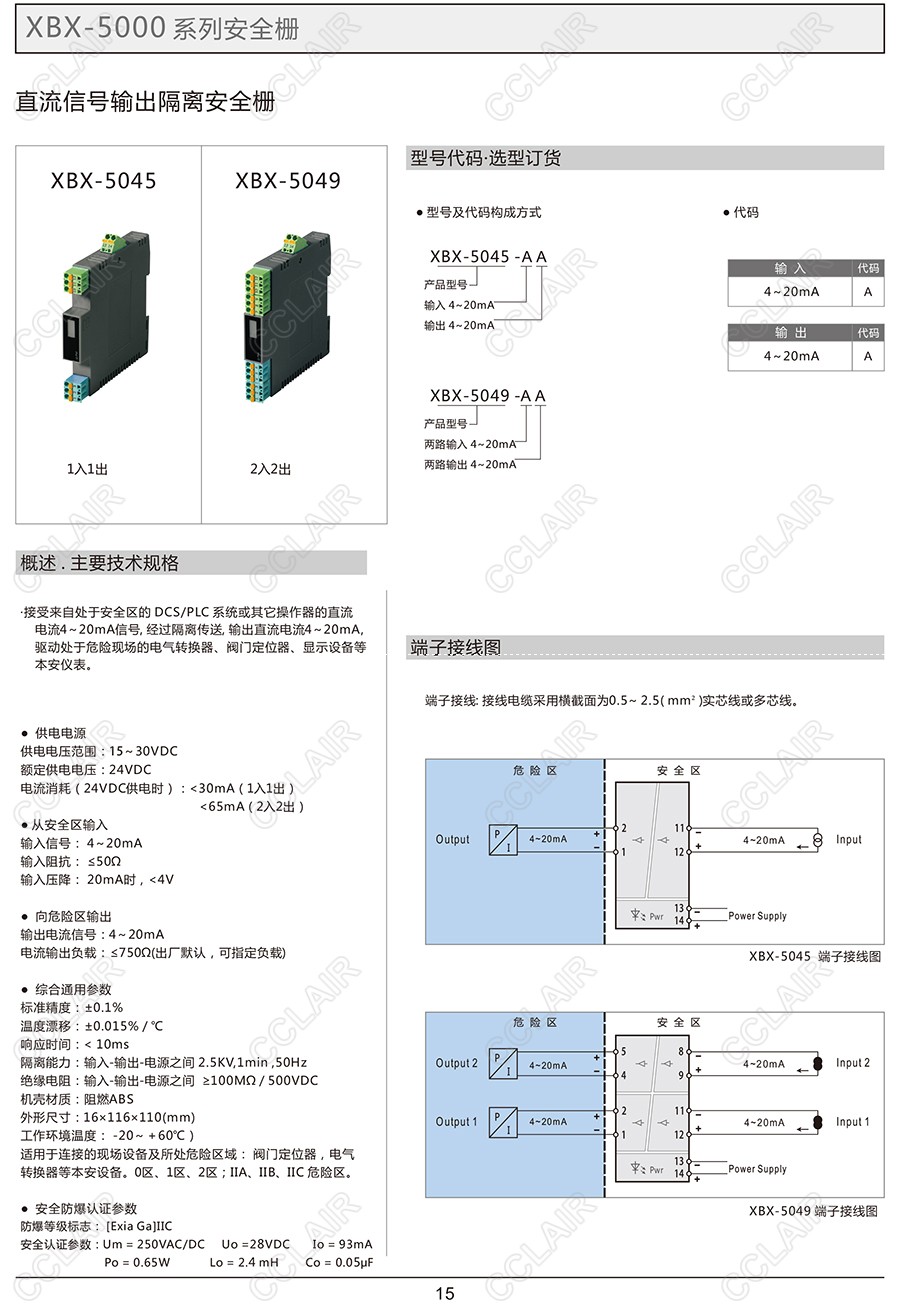 XBX-5045,XBX-5045AA,XBX-5049,XBX-5049AA,直流信号输出隔离安全栅(一入一出、二入二出)