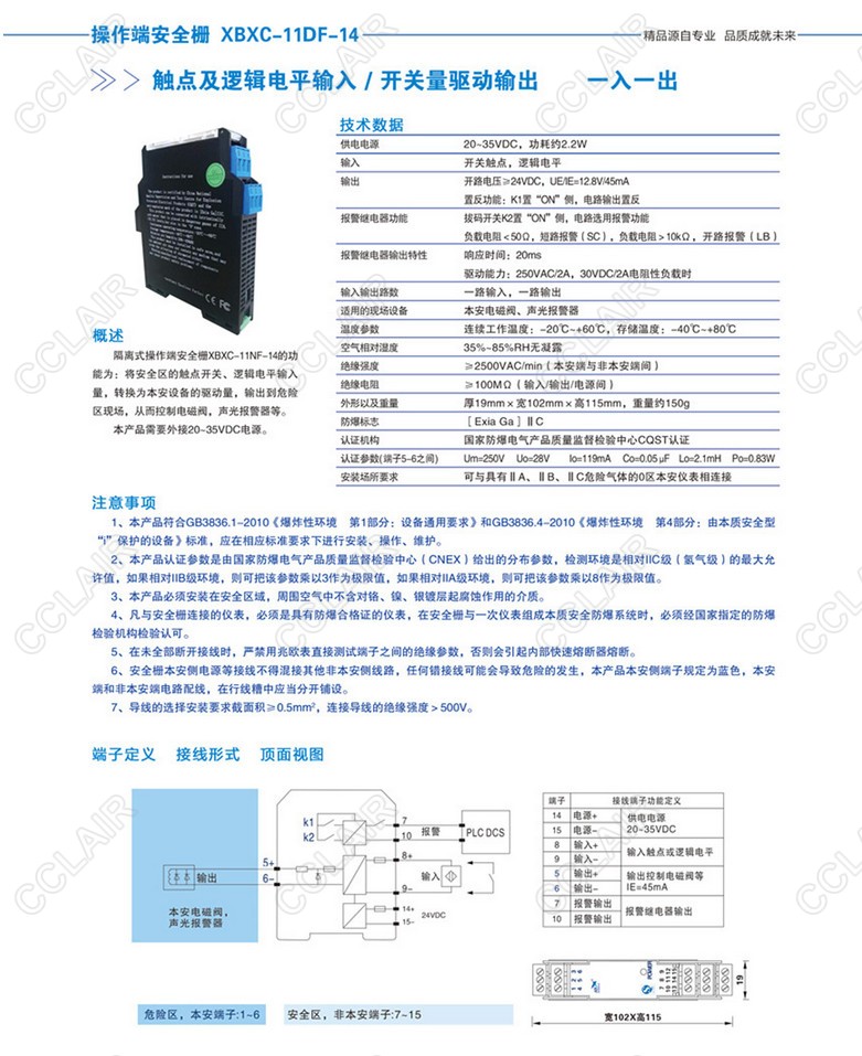 XBXC-11DF-14,操作端安全栅开关量驱动输出(一入一出)
