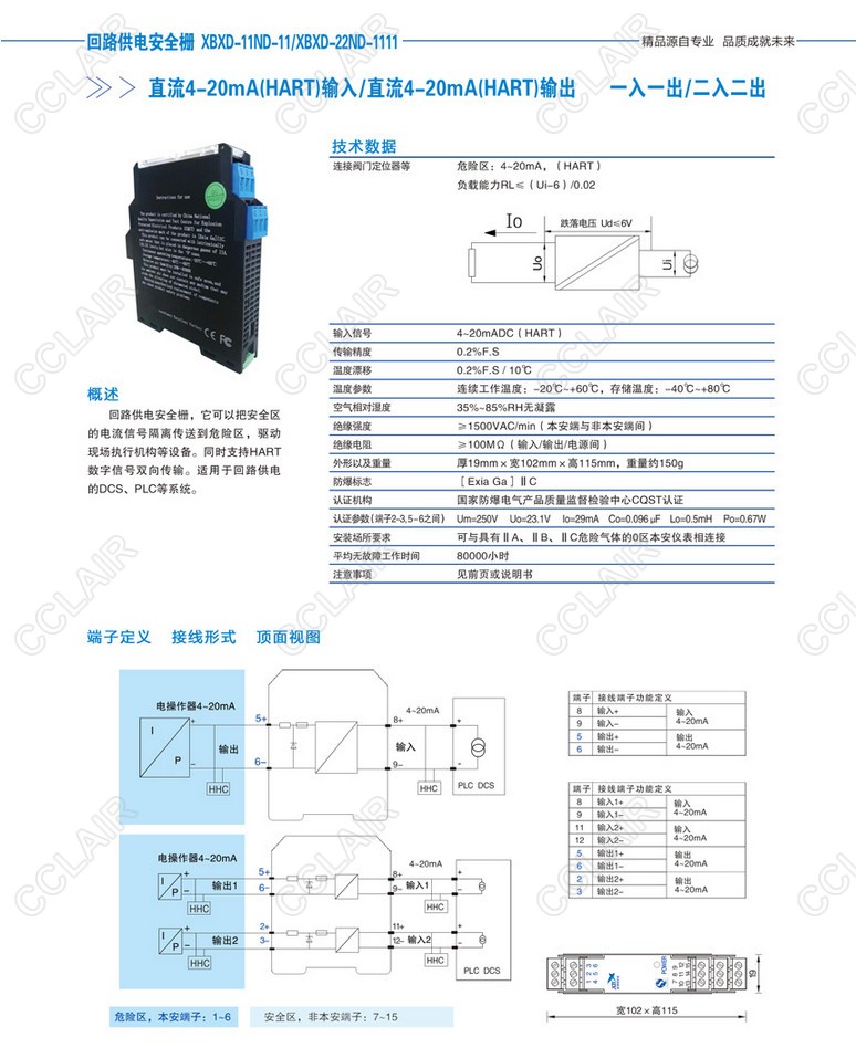 XBXD-11ND-11,XBXD-22ND-1111直流4-20mA输入/直流4-20mA输出(一入一出/二入二出)
