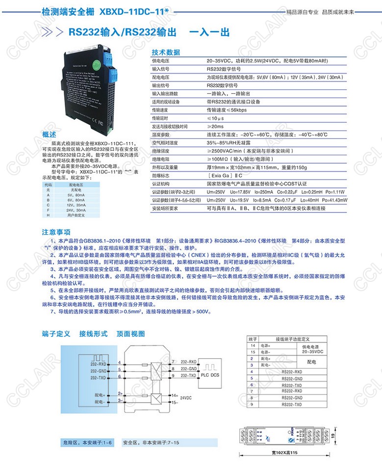 XBXD-11DC-11*RS232入/RS232输出(一入一出)