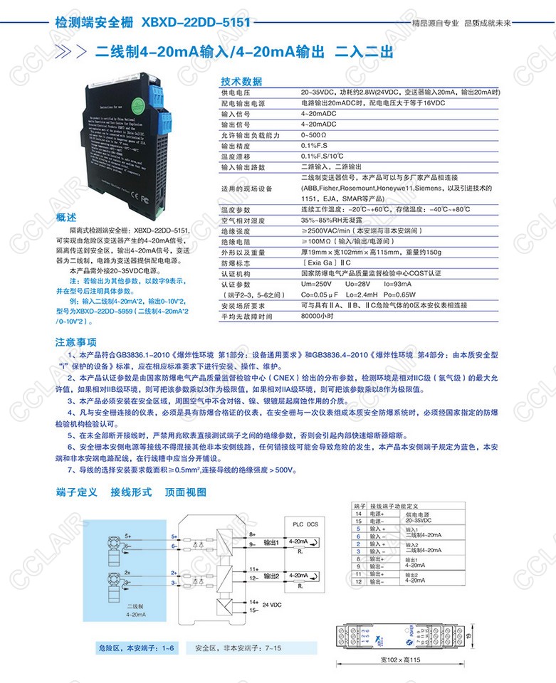 XBXD-22DD-5151,XBXD-22DD-5959二线制4-20mA输入/4-20mA输出(二入二出)