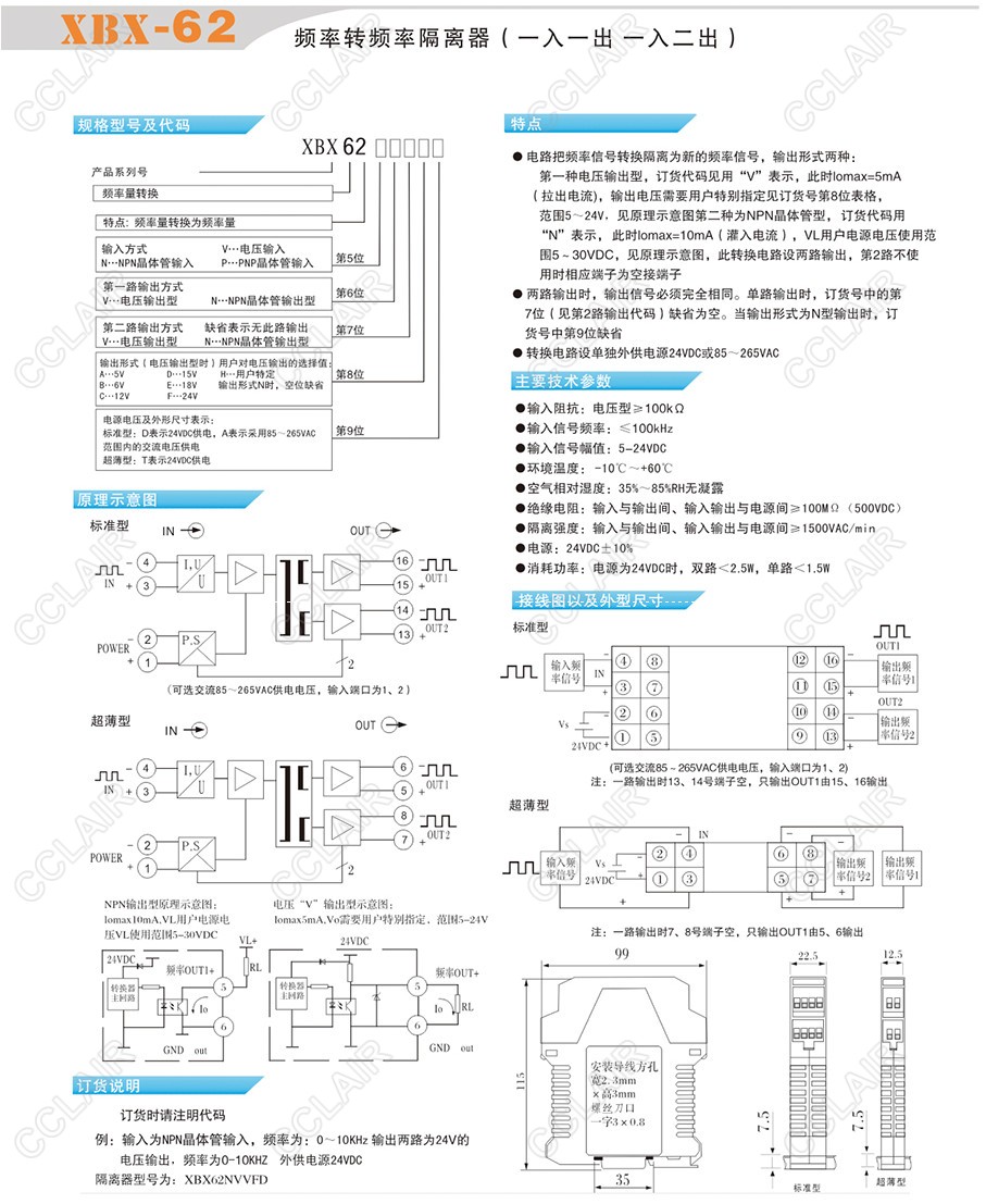 XEX-62-VVVED,XEX-62-NNNED,XEX-62-PVVED,频率转频率隔离器(一入一出 一入二出)