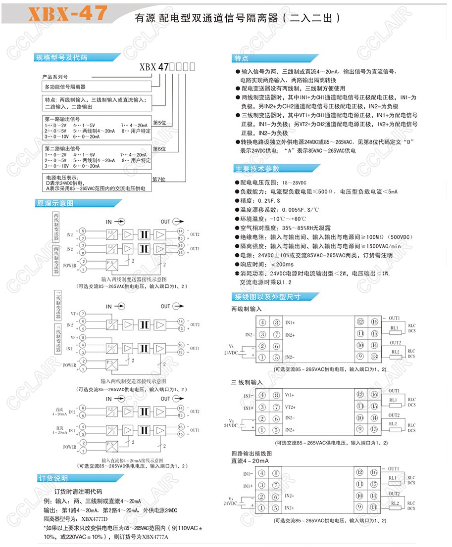 XBX-47D,XBX-47-11D,XBX-47-22D,XBX-47-33D,有源配电型双通道信号隔离器(二入二出)