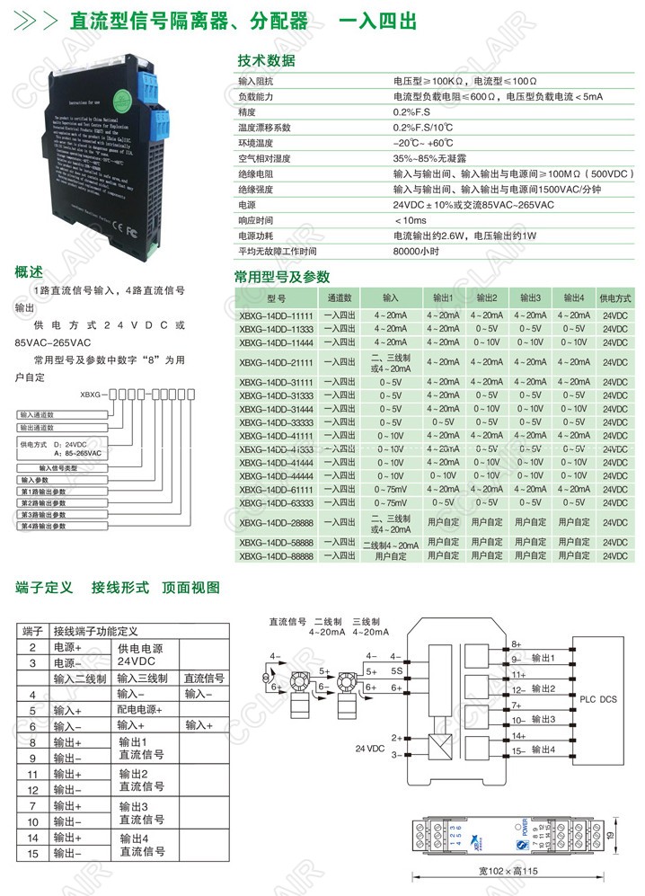 XBXG-14DD,XBXG-14DD-11444,XBXG-14DD-21111,XBXG-14DD-58888,XBXG-14DD-88888,直流信号隔离器、分配器(一入四出)