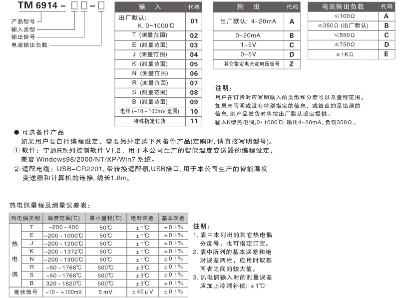 TM6914 热电偶输入,智能温度变送器 一入一出特性
