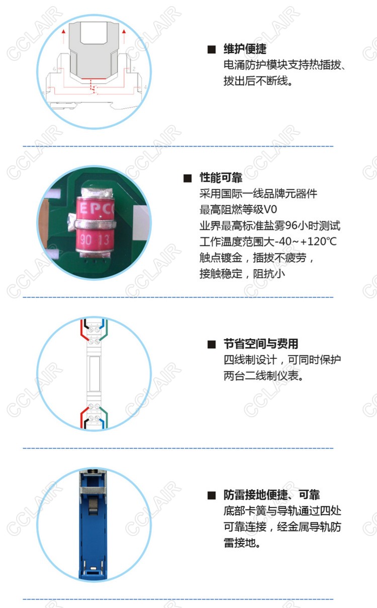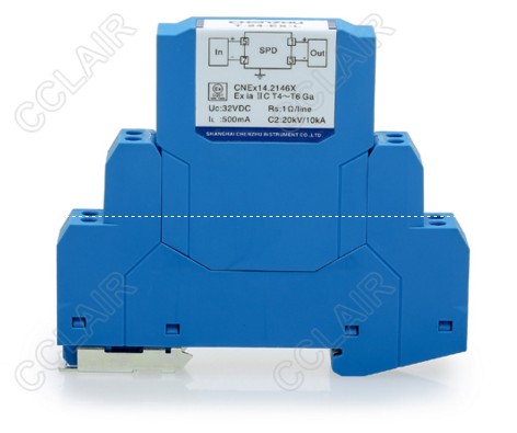 T-5-EX-L 5V电压系统本安型SPD 5V信号SPD,二线制,本安型,适用于线对地隔离电压>500V信号回路,最大放电电流Imax(8/20us):20kA/线,12.5mm超薄,通过DIN35金属导轨接地。 T-5-EX-L3 5V电压系统本安型SPD 5V信号SPD,三线制,本安型,适用于线对地隔离电压>500V信号回路,最大放电电流Imax(8/20us):20kA/线,12.5mm超薄通过DIN35金属导轨接地。 T-5-EX-L4 5V电压系统本安型SPD 5V信号SPD,四线制,本安型,适用于线对地隔离电压>500V信号回路,最大放电电流Imax(8/20us):20kA/线,12.5mm超薄,通过DIN35金属导轨接地。