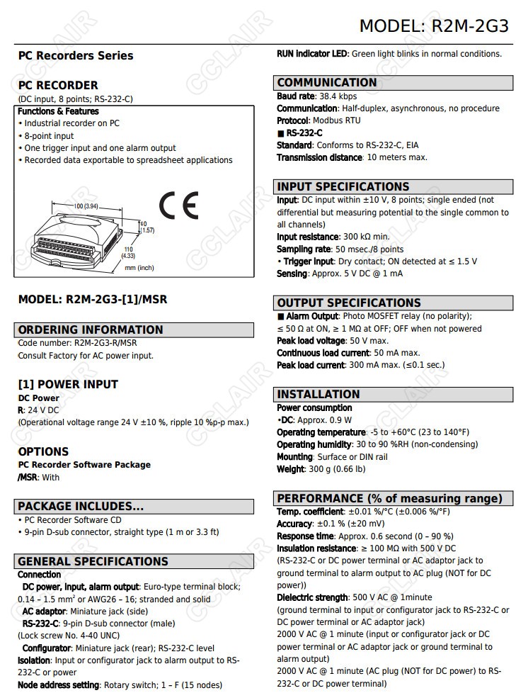 R2M-2G3,R2M-2G3-R/MSR,8点 DC输入 RS232 Modbus I/O 模块