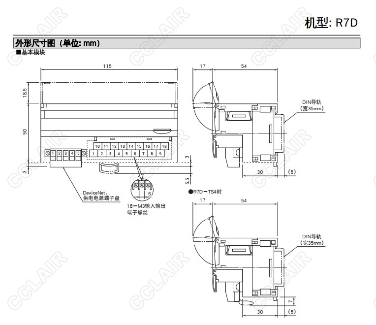 R7D-DA16 接点16点输入模块 R7D-DC16A 接点(NPN)16点输出模块 R7D-DC16B 接点(PNP)16点输出模块 R7D-SV4 直流电压/电流4点输入模块 R7D-TS4 热电偶4点输入模块 R7D-RS4 热电阻4点输入模块 R7D-YV2 直流电压2点输出模块 R7D-YS2 直流电流2点输出模块 R7D-EA16 增设接点16点输入模块 R7D-EC16A 增设接点(NPN)16点输出模块 R7D-EC16B 增设接点(PNP)16点输出模块