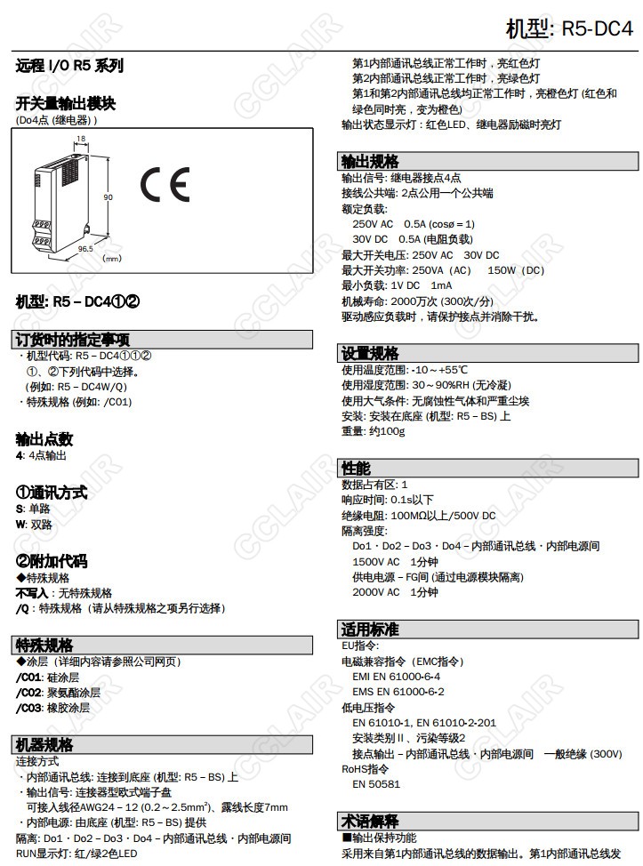 R5-DC4/R5T-DC4,R5-DC4W/C01,R5T-DC4W/C01, Do 4点 接点输出模块 接点输出模块 R5-DC4S/C01,R5T-DC4S/C01