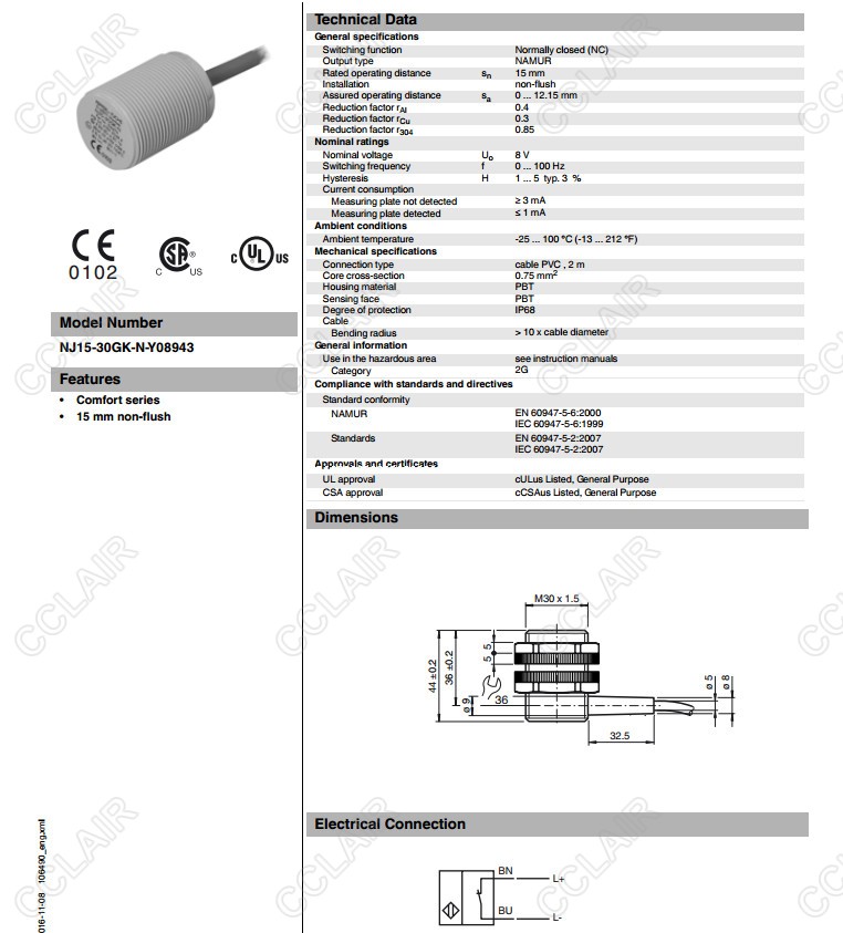 NJ15-30GK-N-20M,NJ15-30GK-N-Y08943,电感式接近开关