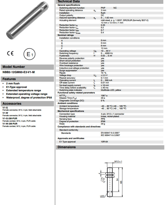 NBB2-12GM60-E3-V1-M电感式接近开关