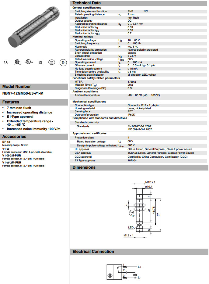 NBN7-12GM50-E3-V1-M电感式接近开关