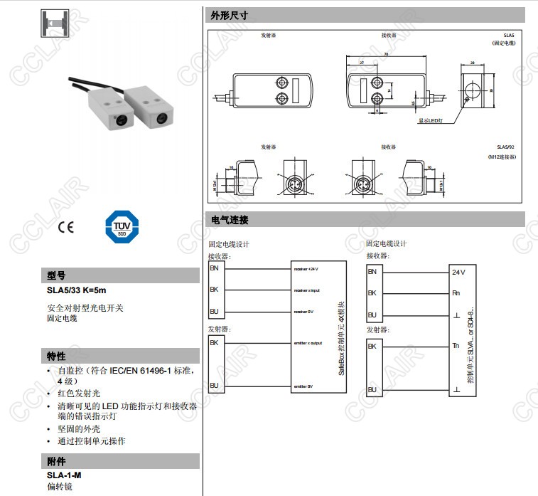 SLA5,SLA5/33K=10m,SLA5/33K=5m,安全对射型光电开关